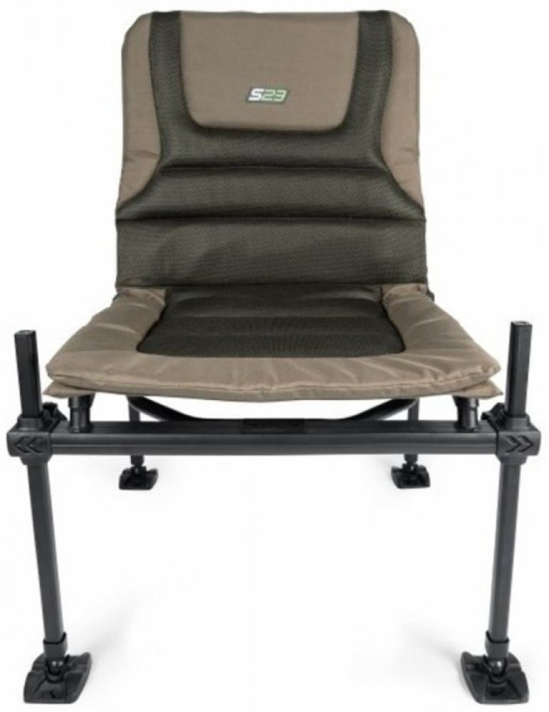 Námi patentovaný design nohou jsme ještě vylepšili, nyní na zakulacený čtvercový profil o průměru 23mm, abychom docílili ještě jednoduššího použití. S23 zdokonaluje stabilitu a nastavení polohy nohou a zároveň se stává jednodušším i použití doplňků ke křeslu. Polstrování křesla je vyrobeno z vysoce kvalitního a lehkého materiálu, zajišťující prodyšnost a komfort při sezení. Ve výbavě má neteleskop...