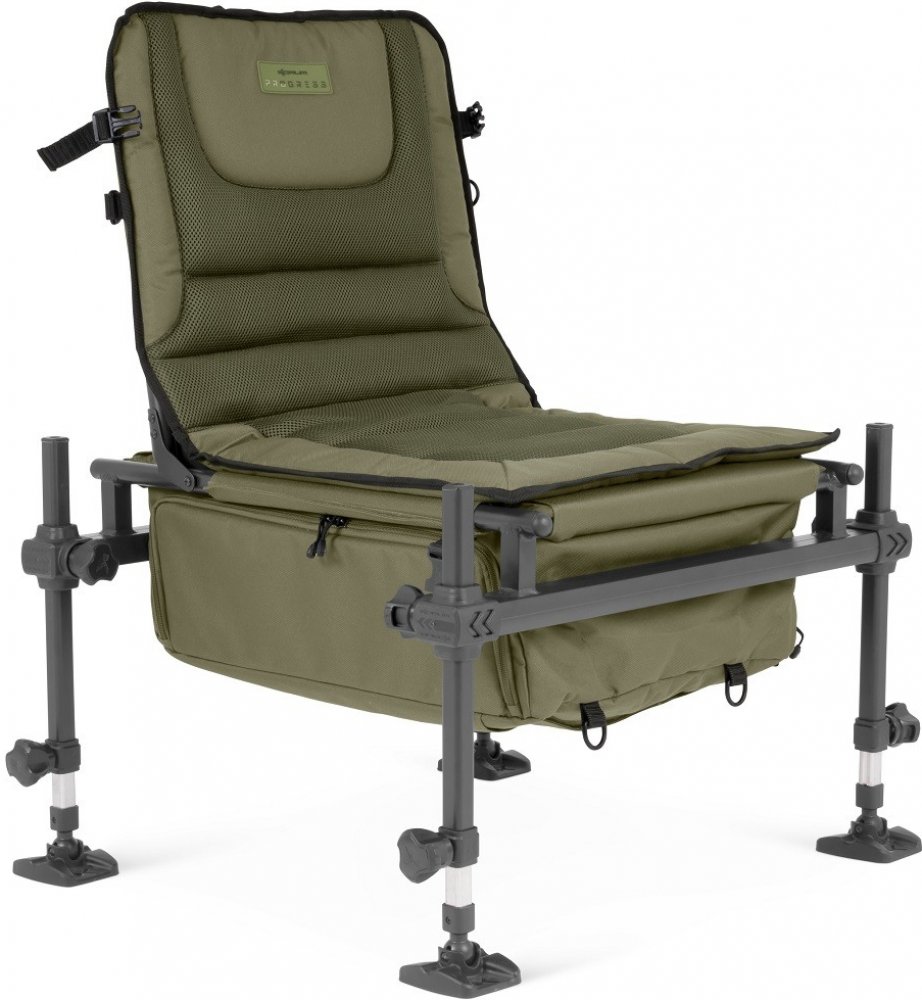 Revoluce v tom, jak rybáři nosí své rybářské vybavení. Díky kombinaci pohodlného a lehkého křesla s kompaktní plochým batohem lze křeslo Ruckchair přenášet stejně jako batoh. Přístup k rybářskému vybavení přímo pod sedadlem, stejně jako to dělají rybáři na bednách, bez problémů s velkou hmotností a přepravou. Taška je vybavena vstupními místy na obou stranách a zadní štěrbinovou kapsou na vidličky...