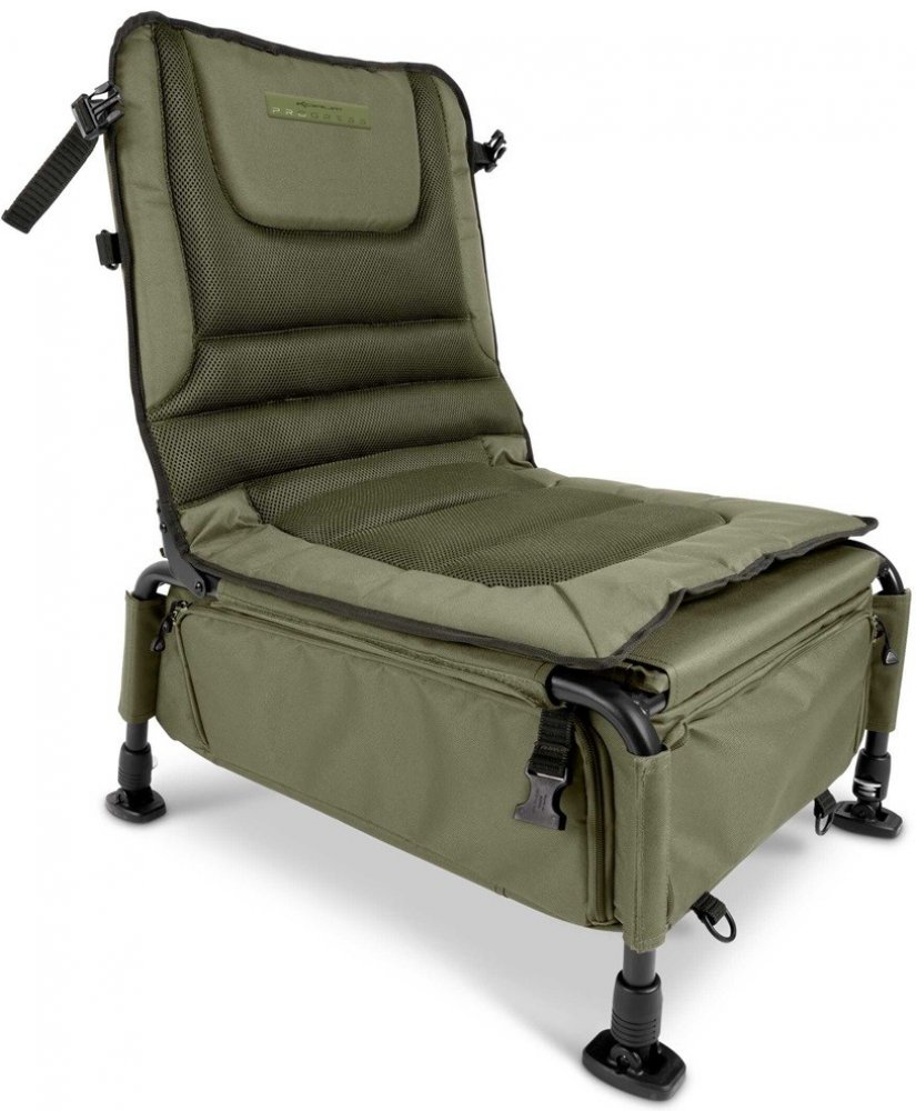 Revoluce v přenášení rybářského vybavení! Křeslo Ruckchair kombinuje pohodlí a lehkost s kompaktním batohem, který lze nosit na zádech. Umožňuje snadný přístup k vybavení pod sedadlem, podobně jako rybářské bedny, ale bez nadměrné hmotnosti a neskladnosti. Taška má tři vstupy, zadní kapsu na vidličky a příslušenství, uzavírá se klipy. Ramenní popruhy jsou vybaveny nastavitelným hrudním páskem, D poutky na podložky a podběrákové hlavy a rukojetí pro snadné přenášení. Parametry Materiál: 100% polyester, hliníkový rám. Hmotnost: 4,75 kg