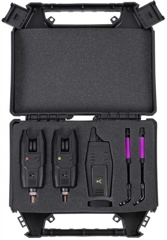 Hlásiče mají citlivé válcové kolečko a jasné LED diody, díky kterým nepřehlédnete žádný záběr. Reproduktor je voděodolný a má nastavitelnou hlasitost. LED diody indikují upozornění až po 10 sekund. Příposlech má daleký dosah, vypínač a ovládání hlasitosti. V kufříku dodáváno spolu se dvěma fialovými swingery.