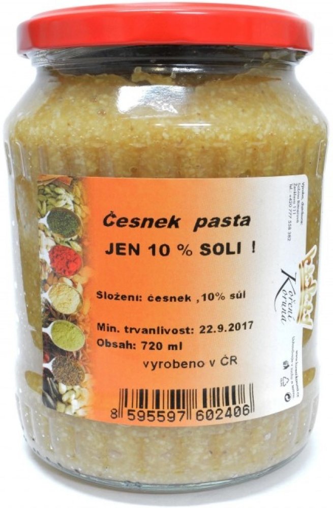 Použití v kuchyni: k marinování a nakladání masa na gril a rožeň, pomazánky, saláty, zelenina, luštěniny, obiloviny, do guláše, omáček, polévek, bramboráky, topinky, do mletých mas a minutkové kuchyně.Složení: česnek drcený, jedlá sůl s jódem 10%, stabilizátor benzoant.Množství: 720mlVyrobeno v ČR