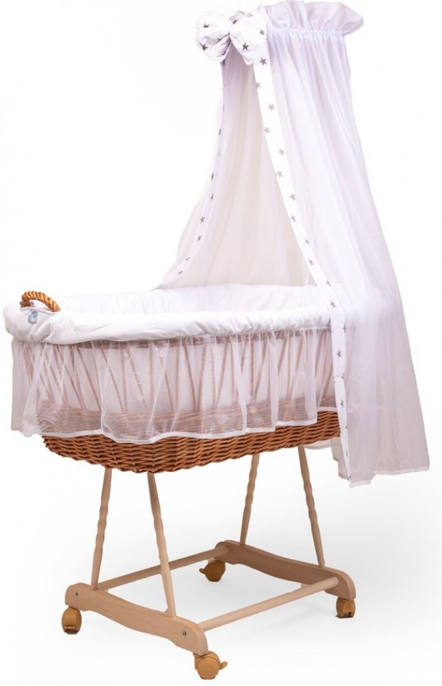 Součástí je:- matrace- tloušťka 5cm s bavlněným potahem- ložní povlečení včetně froté prostěradla- polštářek a peřinka ( 35x 40cm, 80x 80cm) - podestýlka - baldachýn s mašličkou- konstrukce a samotný koš- montážní sadaTechnické údaje: Plocha lůžka: 98 x 60 cm Váha: 13 kgHloubka koše: 34 cm bez matrace + 5 cm matrace