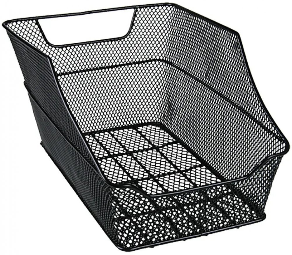 Tento extra velký zadní košík na kolo je ideální pro každodenní přepravu objemnějších předmětů, jako jsou školní aktovky nebo nákupy. Díky hustě tkané konstrukci z odolné černé oceli bezpečně udrží i menší předměty bez rizika vypadnutí. Zkosená přední část zajišťuje, že košík perfektně sedí i na kolech s nízko posazeným sedlem. Košík se pevně přišroubuje k nosiči zavazadel, což zvyšuje jeho stabil...