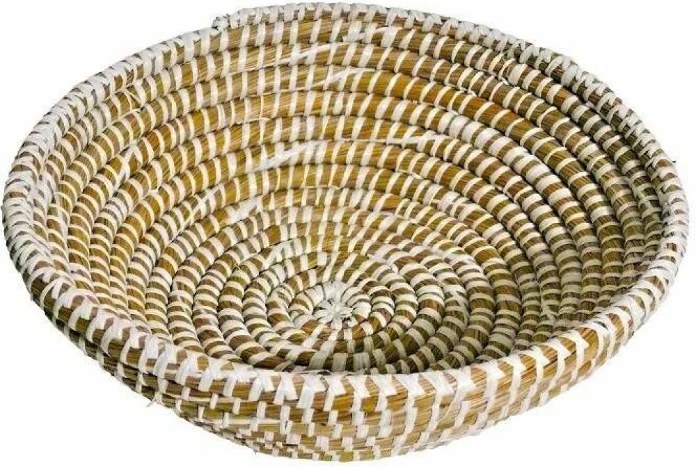 Kulatá ošatka vyrobená z rýžové slámy, spletená umělým lýkem.