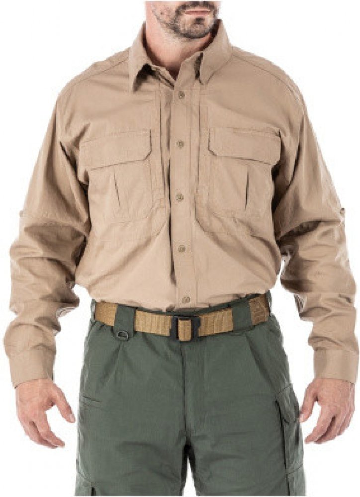 Košile Tactical Shirt od 5.11 Oblíbený v Americe mezi policisty, hasiči a vojáky, tento kousek oblečení je příjemný na nošení a i přes svůj profesionální vzhled nabízí spoustu pohodlí a praktických kapes. Plátěná košile Tactical Shirt je díky trojitým švům s dvaceti šesti výztuhami na namáhaných místech a kvalitní bavlně kousek, který vás podrží v náročných podmínkách. Na hrudi má košile dvě viditelné kapsy, dvě schované kapsy a kapsičku na pera najdete tradičně na levém rukávu košile. Prodyšnost u košile potom kromě látky samotné zajišťuje ještě odvětrání Drillex v zadní části košile. vlastnosti Košile s dlouhým rukávem Tactical Shirt systém Drillex pro cirkulaci vzduchu technologie odvádějící vlhkost materiál: 100% bavlna schované kapsy Ready Pocket™ kapsička na pero na levém rukávu trojité stehy 26 křížových prošití švů límec na skryté knoflíčky knoflíky z melaninu nehoří ani netají