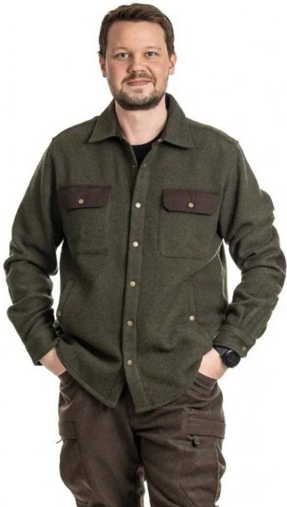Robustní flanelová košile je vyrobena z měkké a pohodlné směsi vlny a syntetických materiálů, přičemž vlna tvoří až 55 % obsahu. Nabízí vynikající teplo a izolaci, ideální pro chladné dny v přírodě. Bunda je vybavena praktickými náprsními a bočními kapsami s elegantními semišovými výztuhami, které zvyšují její odolnost a styl.
