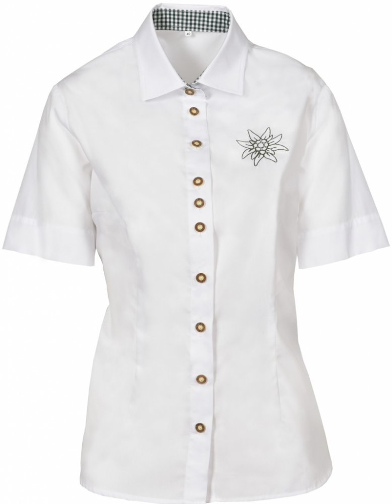 Tato košile s krátkými rukávy je vyrobena z kvalitní směsi 60% bavlny a 40% polyesteru, což zaručuje nejen pohodlné nošení, ale i snadnou údržbu. Košile je vyrobena z 60% bavlny a 40% polyesteru. Je ozdobena jednoduchou výšivkou Alpské protěže. Knoflíky navržené jako jemná imitace paroží, přidávají lovecký vzhled. Tato bílá košile je univerzální a elegantní volbou, která se skvěle kombinuje s kalh...