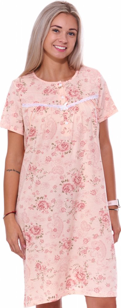 Meruňková květovaná dlouhá noční košilka pro ženy či dívky na knoflíky u krku