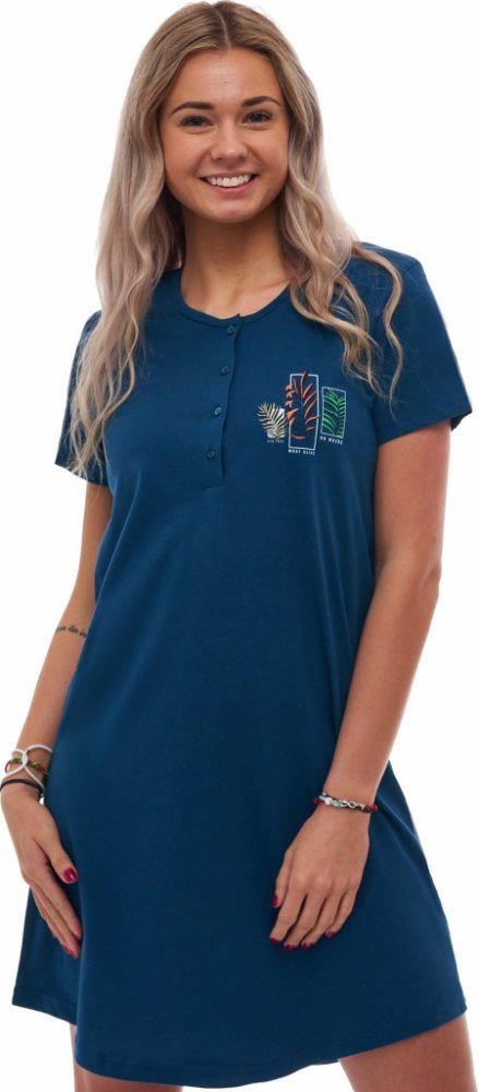Modrozelená noční košilka pro ženy či dívky na knoflíky u krku obrázek trojlístek kapradí. Objevte pohodlí a eleganci této dámské noční košile s propínáním u krku. Tato košilka je vyrobená z kvalitní bavlny, která je měkká a příjemná na dotek, zajišťující klidný a pohodlný spánek.