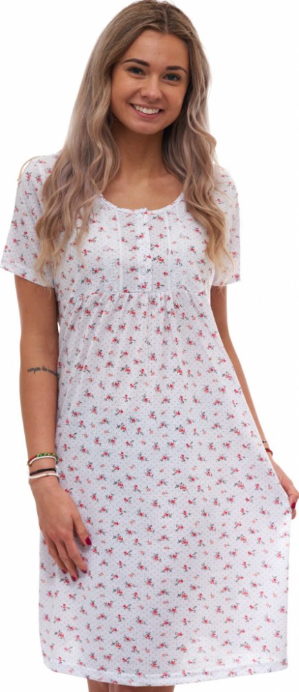 Dámská noční košilka s růžičkami a jemným puntíkem – zapínání u krku. Objevte pohodlí a eleganci této dámské noční košile s propínáním u krku. Tato košilka je vyrobená z kvalitní bavlny, která je měkká a příjemná na dotek, zajišťující klidný a pohodlný spánek.