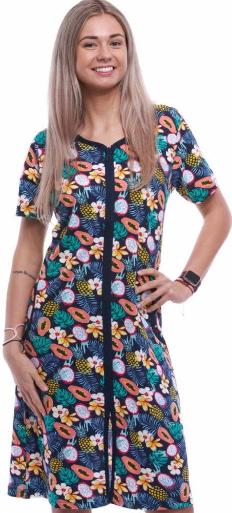 Tento bavlněný model s celopropínáním na zip je univerzální a snadno kombinovatelný s dalšími košilkami z naší nabídky, jako jsou košilky s krátkým rukávem, bez rukávů nebo s úzkými rukávy. Díky celopropínání je ideální i jako lehký župan, který můžete nosit doma nebo při relaxaci. Nádherný střih, kvalitní materiál a praktické kapsy na každé straně činí tento kousek nejen elegantní, ale i funkční. Skvělý nejen na každodenní nošení, ale i pro práci na zahrádce nebo jako pracovní košile-župánek.