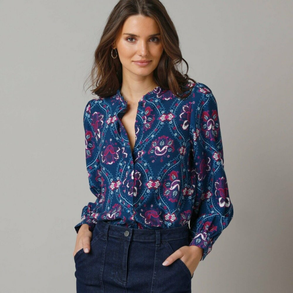 Košilová halenka s potiskem květin modrá