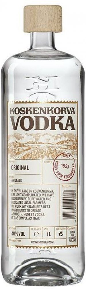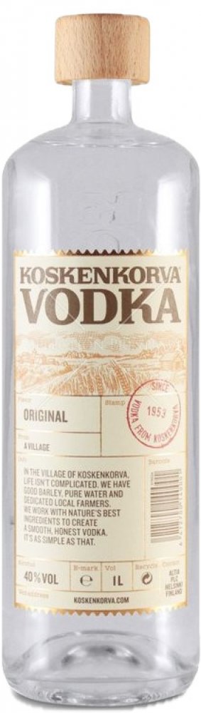 Nejoblíbenější vodka ve Finsku. Jako všechny pravověrné vodky má i Koskenkorva svůj základ v přírodních ingrediencích. Vyrábí se více než 500 násobnou destilací. Destilát z nejlepších odrůd ječmene doplňuje pouze čistá ledovcová voda. Obsah alkoholu 40%.