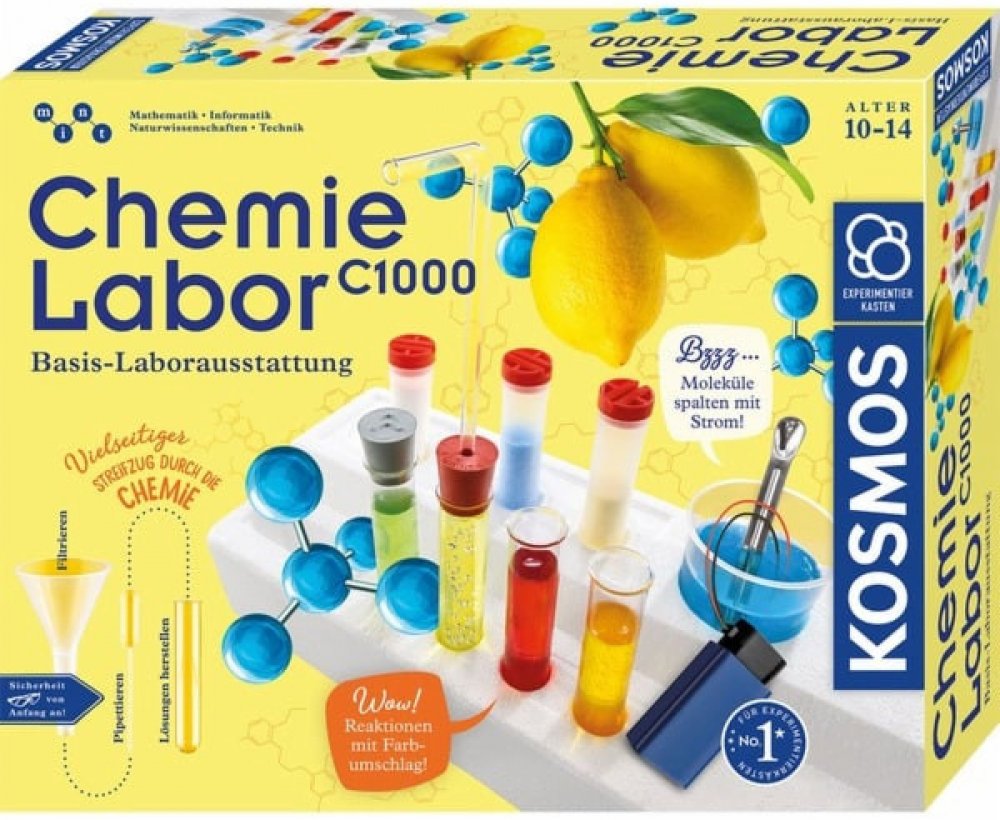 *s chemickou laboratoří KOSMOS objevují zvídavé děti svět látek*experimentální box*sliz, bublající kapaliny, měnící se barvy - ve 20 efektivních a bezpečných pokusech si děti vyzkouší, jak zábavná je chemie Působivá laboratorní stanice s mnoha různými nádobami a přístroji podporuje hraní rolí a dělá z chemických pokusů skutečný zážitek.