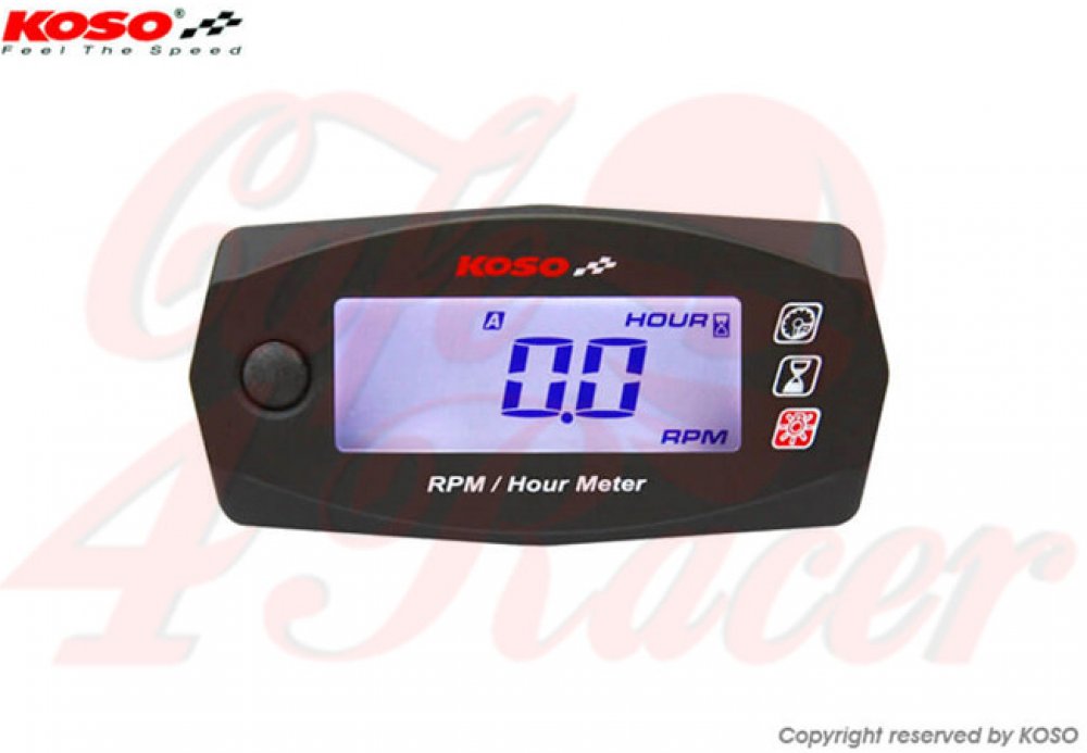 Tento mini LCD měřič vyvinutý společností KOSO má funkci počítání provozních hodin a také zaznamenávání aktuálních otáček.