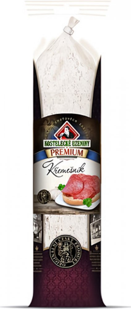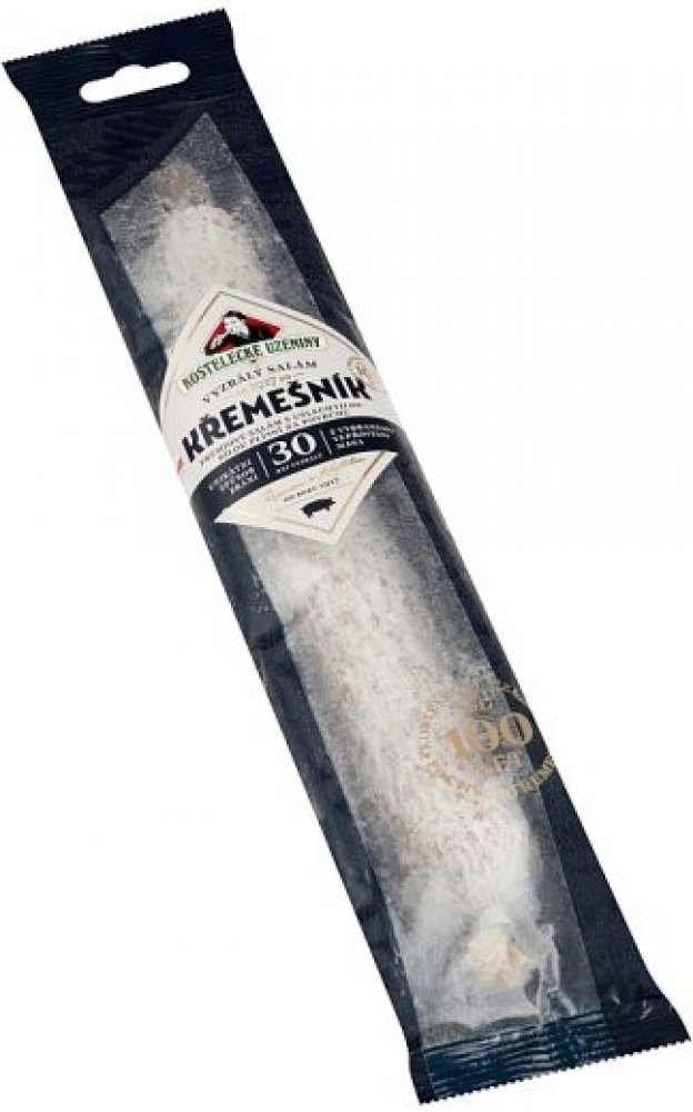 -- Křemešník, salám v celku. Je vyroben z pečlivě vybraného a řemeslně opracovaného českého vepřového masa. 42 dní a nocí vyzrálý ve speciálních komorách v srdci Vysočiny pod dohledem řeznických mistrů z Kostelce.