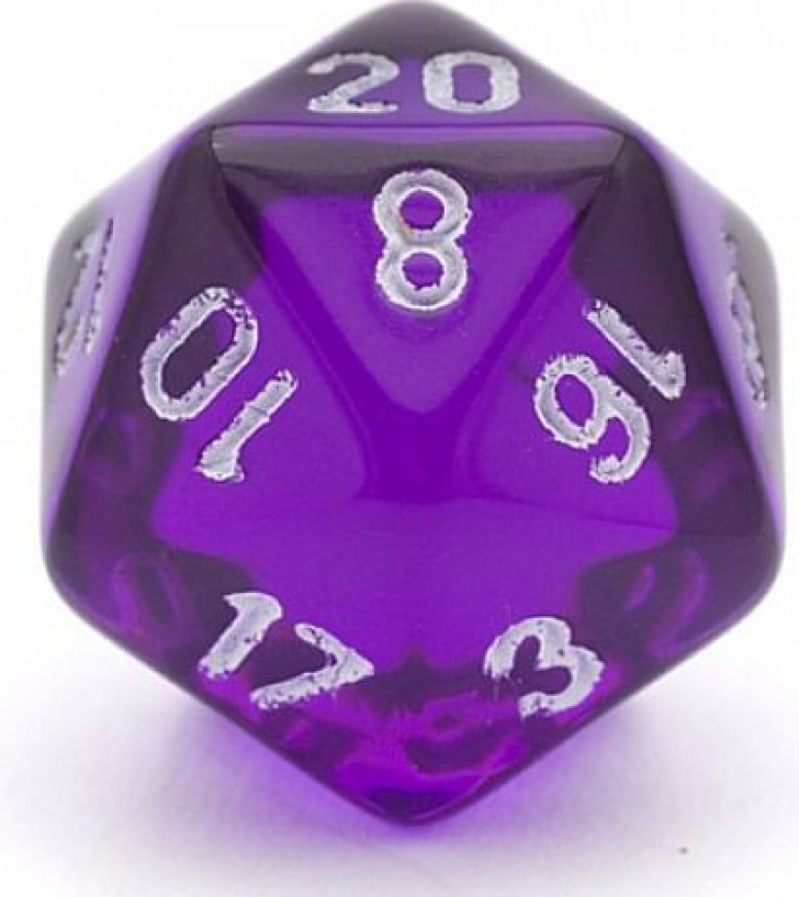 Dvacetistěnná hrací kostka z průsvitného plastu, hází čísla 1-20. Hodí se ke všelijakým hrám, kupříkladu Dungeons and Dragons.