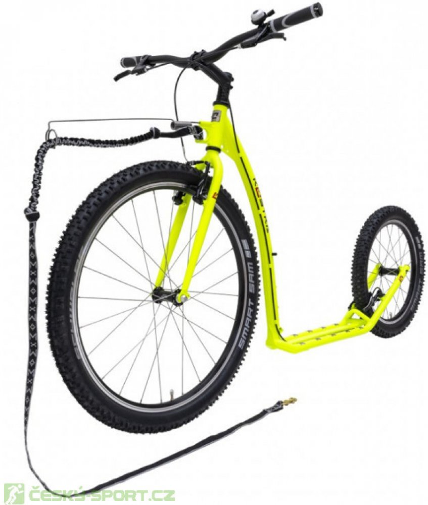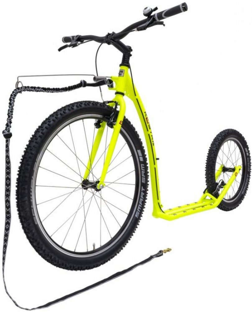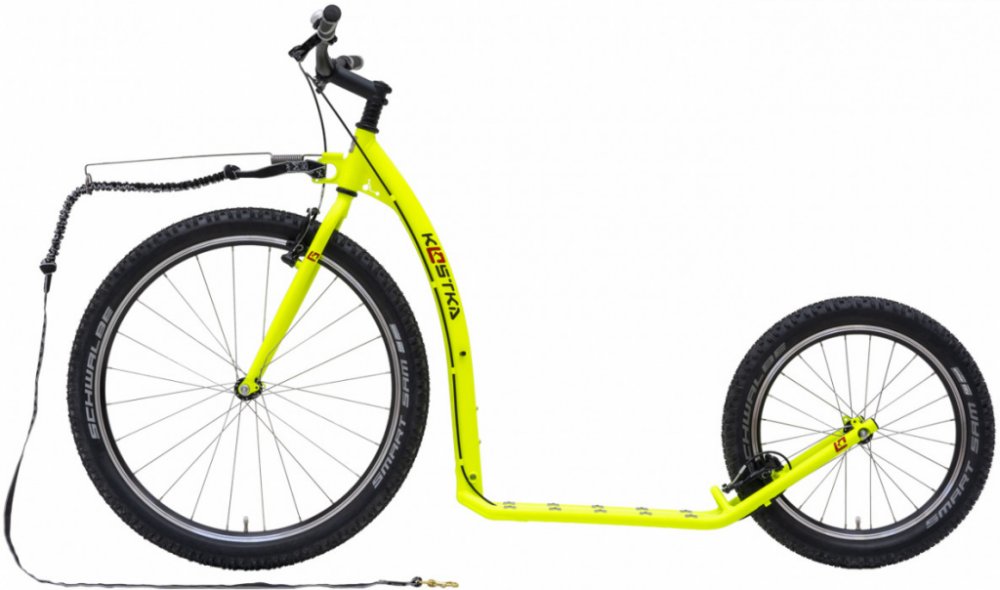 Koloběžka Kostka Mushing Racer Fun G6 s koly 27,5/20“ je ideální společník pro aktivní jízdu v terénu s vaším čtyřnohým mazlíčkem. Tato koloběžka je dodávána s adaptérem a pružným vodítkem, což umožňuje pohodlné zapřažení vašeho psa a společnou radost z pohybu. Je navržena pro bezpečnou, pohodlnou a efektivní jízdu v terénu pro vás i vašeho čtyřnohého společníka. Díky svým vlastnostem je ideální volbou pro každého, kdo hledá kvalitní koloběžku pro sportovní aktivity se svým mazlíčkem. Koloběžku jsme opatřili předním 27,5 palcovým kolem, velké přední kolo perfektně vede jízdní stopu. Společně se zvýšenou světlou výškou nášlapu koloběžka lépe překonává nerovnosti. - Přední 27,5 palcové kolo pro lepší překonávání nerovností. - Rám 6. generace s ochranou rámu a zvýšenou tuhostí díky speciálním svárům a výztuhám na spodní straně nášlapu. - Protiskluzové nerezové figury na horní straně nášlapné plochy. - Teréní pláště Schwalbe Smart Sam pro zajištění dobré adheze na různých typech terénu. - CNC obráběné Náboje Kostka HK 1024 FS s inovativní uložením vysoce kvalitních japonských průmyslových ložisek s nízkým třením. - Prodloužený rozvor pro větší pohodlí a dostatek místa pro jezdce. - Dvoustěnné ráfky Remerx se soustruženou brzdnou plochou. - Kvalitní V-brzdy Shimano 4000. - Univerzální využití jak pro sportovně laděné výlety se psem, tak i běžné venčení. - Vhodná pro aktivní jízdu s odrážením i tažení vaším čtyřnohým mazlíčkem. - Zvýšená světlost koloběžky pro lepší překonávání nerovností. - Vynikající poměr cena/výkon zaručuje výbornou startovací koloběžku profesionálních i hobby Musherů.