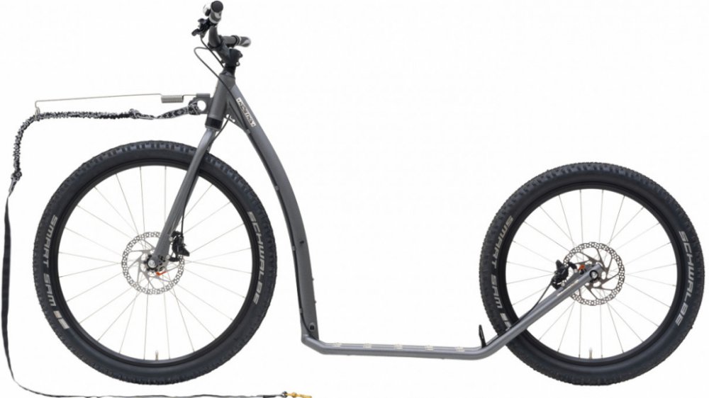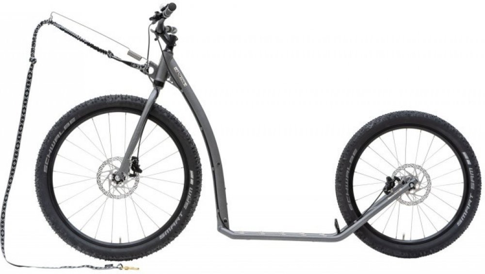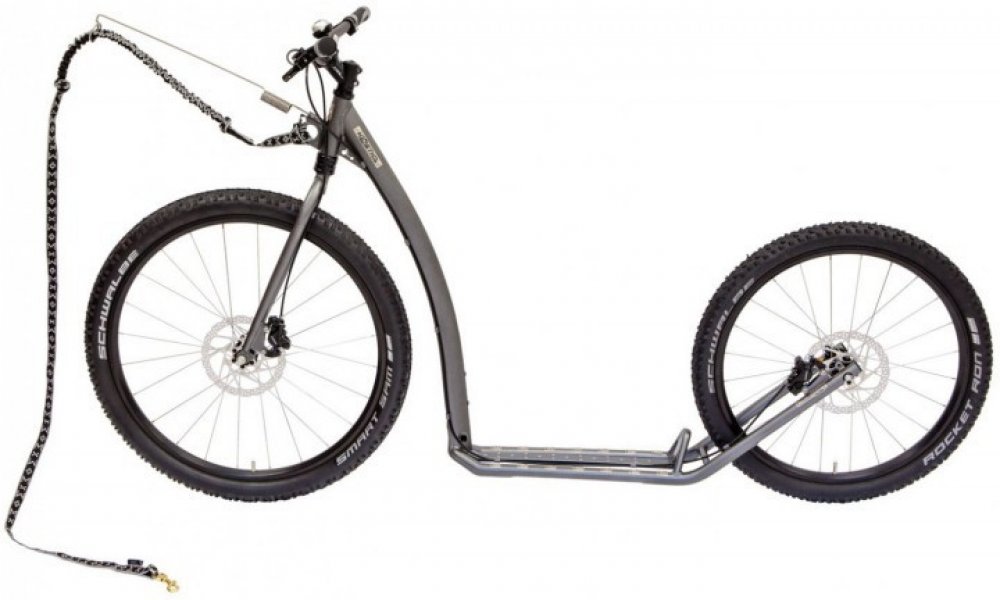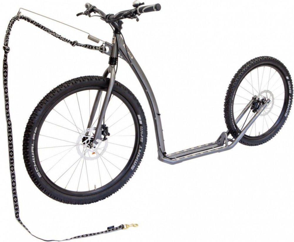 Koloběžka je dodávána včetně pružného adaptéru a vodítka. Stačí tedy jen zapřáhnout a vyrazit za dechberoucími zážitky, které vám nadobro uvíznou v paměti.