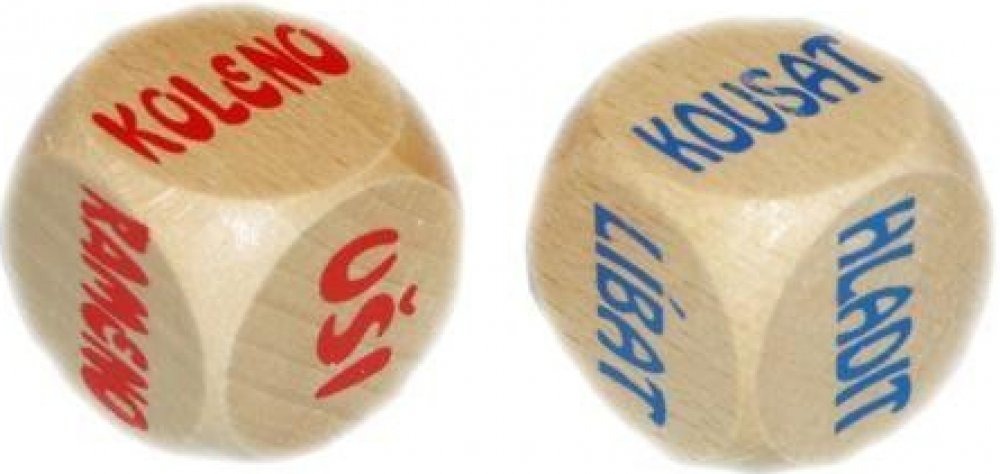 Užijte si v ložnici se svou drahou polovičkou trochu napětí a kupte si tyto kostky duo sexy, které Vám přesně poradí s jakou částí těla své lásky máte co provádět. K dispozici máte dvě kostky. Jedna obsahuje části těla: Koleno, Rameno, Uši, Ruce, Rty a otazník. A druhá obsahuje činnosti: Kousat, Lízat, Hladit, Dotýkat se, Líbat a otazník. Pokud Vám na kostce padne otazník, je jen na Vás, kterou čá...