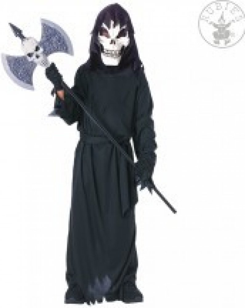 Plášť s kapucí Kostlivec s maskou a rukavicemi. Zbraň není součástí kostýmu. Materiál: 100% polyester.