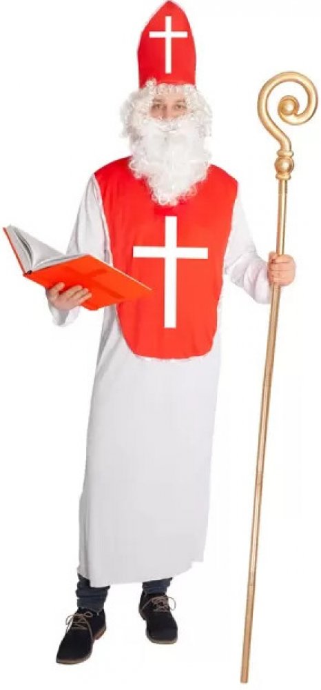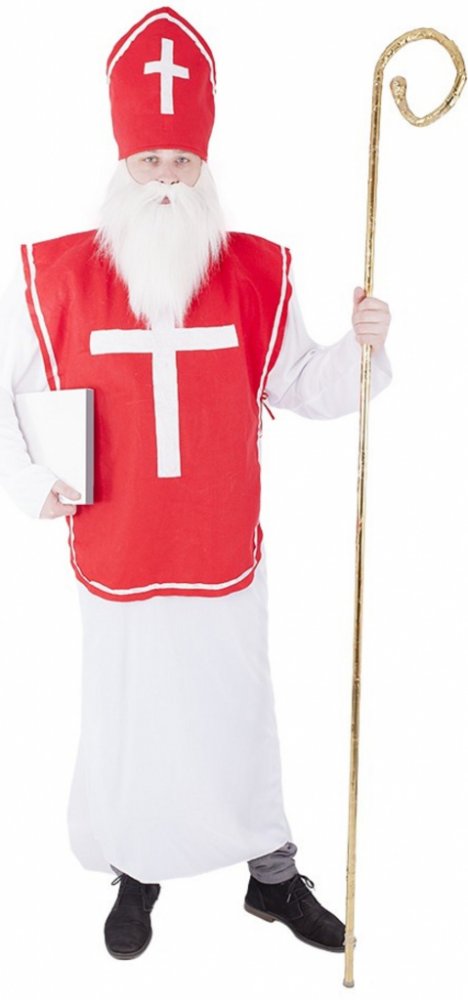 Velikost: univerzálníBalení obsahuje: mikulášskou čepici, dlouhé bíle roucho a červený přehoz s křížem.