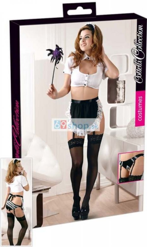 Okouzli všechny s tímto svůdným, šestidílným setem pokojské, který spojuje klasickou eleganci s moderní smyslností!Proč si ho zamiluješ?Hluboce vykrojený, krátkorukávový bílý top s černými lesklými knoflíky - zvýrazní výstřih a přitáhne pozornost.Černé saténové kalhotky s podvazky, zdobené bílou krajkou - elegantní a sexy vzhled.Otevřený klín s krajkovým lemem - můžeš si jej nechat i při akci, což přidává na intimitě.Nastavitelné a odepínací podvazkové pásky - pohodlí na míru a více možností nošení.Černé krajkové punčochy, bílý límeček s knoflíky, čepeček s čelenkou a zástěrka s bílým krajkovým lemem a černým saténovým páskem - kompletní look pro role play.Na to pozor:Čištění: Doporučeno ručně prát ve vlažné vodě s jemným pracím prostředkem, aby materiály zůstaly krásné.Není vhodné žehlit, bělit ani sušit v sušičce - pro delší životnost setu.Peříčkový šimrátko není součástí balení - můžeš si ho pořídit zvlášť jako doplněk.Sada obsahuje:1x bílý, hluboce vykrojený top s krátkými rukávy a černými lesklými knoflíky1x černé saténové kalhotky s podvazky, volánky a bílou krajkou, otevřený klín1 pár nastavitelných a odepínacích podvazkových pásků1 pár černých krajkových punčoch1x bílý límeček s knoflíky1x čepeček s čelenkou1x zástěrka s bílým krajkovým lemem a černým saténovým páskemVlastnosti produktu:Materiál topu a límečku: 80% bavlna, 20% elastanMateriál kalhotek s podvazky: 90% polyamid, 10% elastanMateriál zástěrky a čepečku: 90% polyester, 10% elastanMateriál punčoch: 100% polyamidBarva: kombinace černé a bíléVelikost: Univerzální, díky pružnému materiálu padne různým postavám