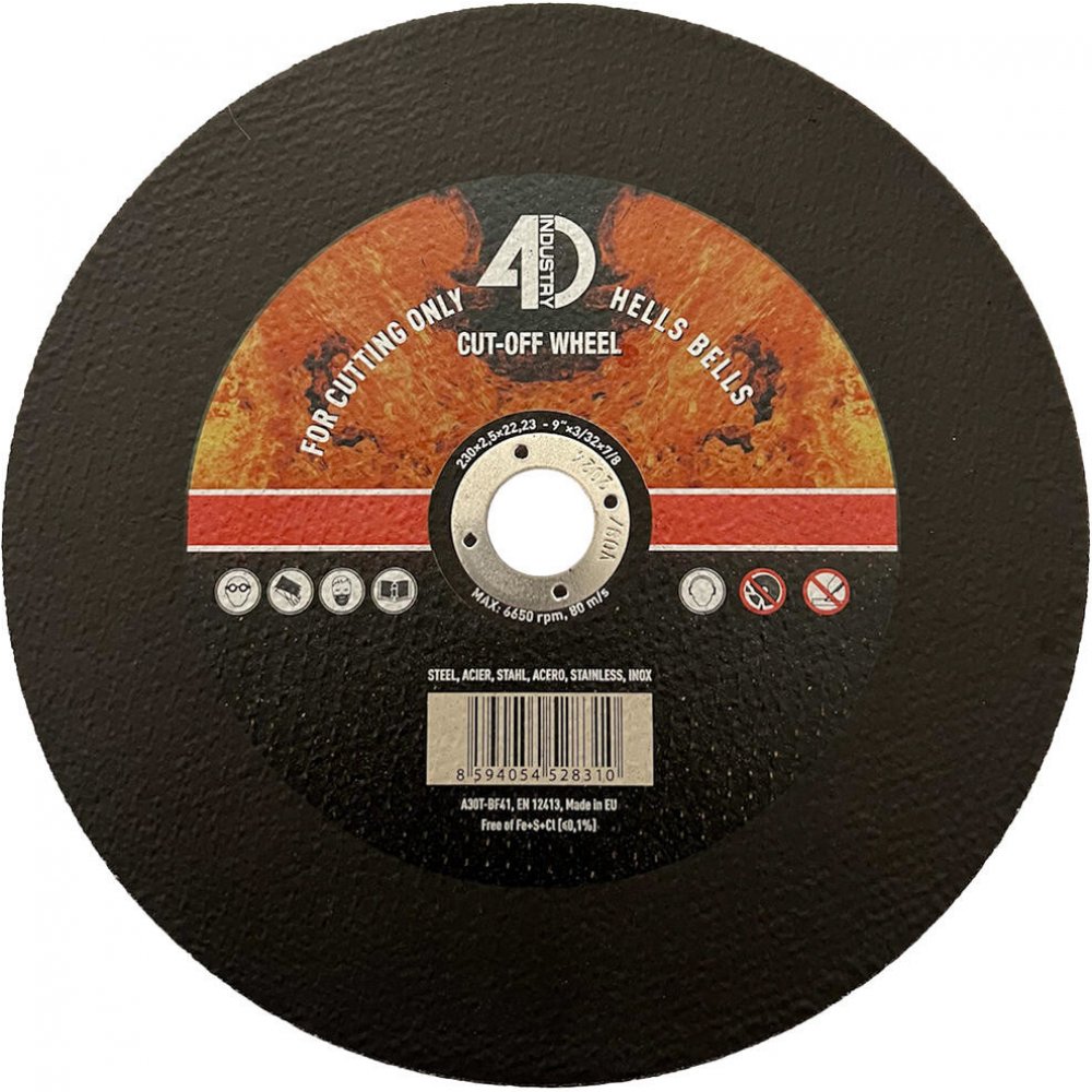 Kotouč řezný na ocel a nerez 230 x 2,5 x 22,2 mm. rozměry: 230 x 2,5 x 22,2 mm Řezné kotouče Hells Bells s bakelitovým pojivem jsou vyrobeny z prémiového korundového zrna, které je zárukou rychlého řezu …