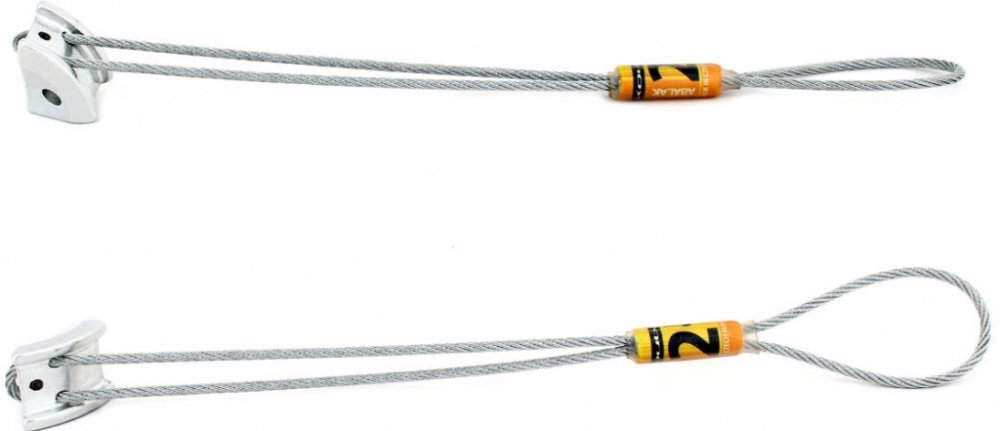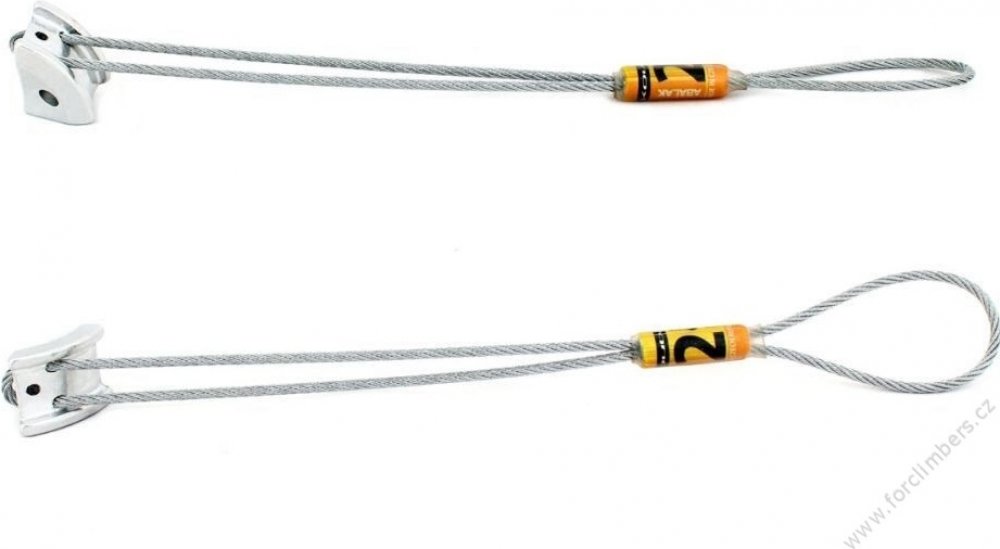 Duralový vklíněnec Abalak s pevnostním ocelovým lankem, vyprofilovaného tvaru. Abalak je možné usadit do horizontálních i vertikálních skalních puklin s rovnoběžnými stranami.