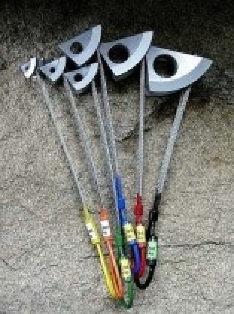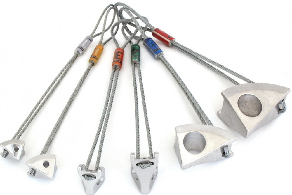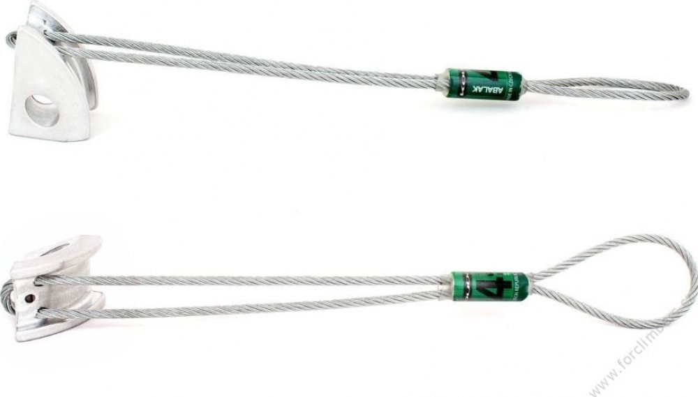 Duralový vklíněnec Abalak s pevnostním ocelovým lankem, vyprofilovaného tvaru. Abalak je možné usadit do horizontálních i vertikálních skalních puklin s rovnoběžnými stranami.