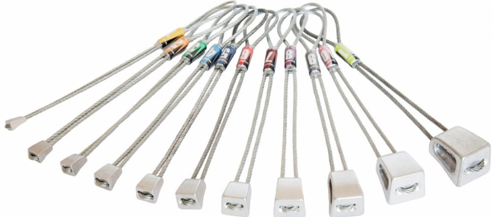 Sada duralových vklíněnců Kouba Granite s pevnostním ocelovým lankem. Sada obsahuje 11ks vklíněnců. Vklíněnce jsou vyrobeny v mírně prohnutém tvaru, což zaručuje jejich snadné, rychlé a bezpečné zakládání do různých typů spár. Velikost spáry od 7,5 do 29,5mm.