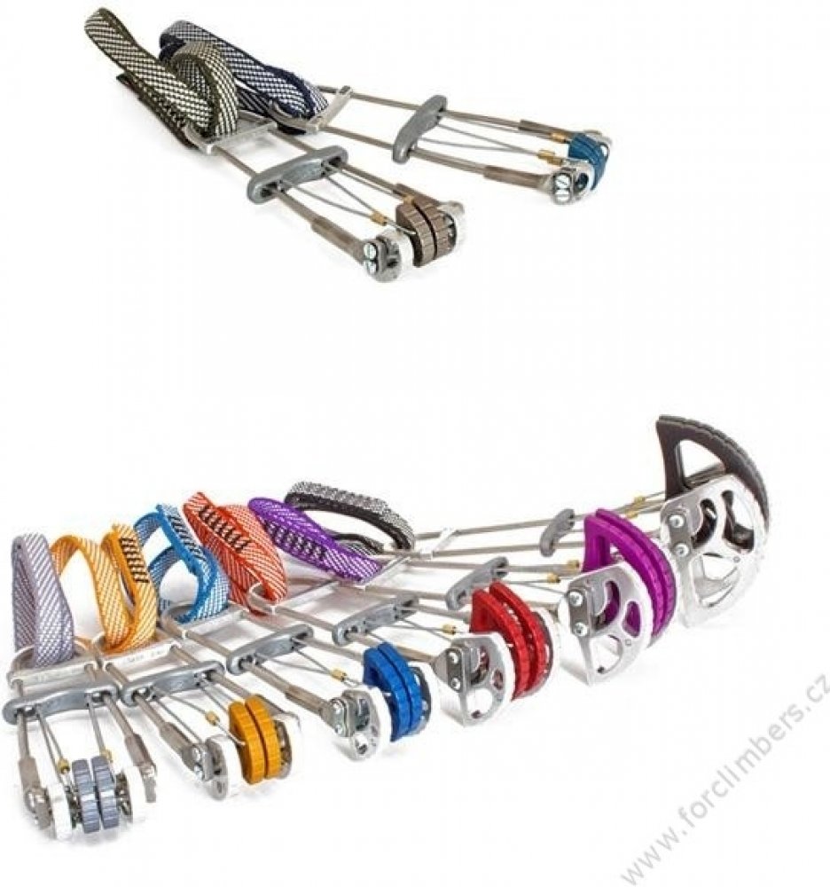 CENOVO VÝHODNÝ SET! Dvoj-osičkové friendy Kouba Permon Biaxial s rámovou konštrukciou. Farebne odlíšené segmenty a slučky umožňujú ľahkú orientáciu medzi jednotlivými veľkosťami. Rámová konštrukcia zvyšuje tuhosť, dvoj-osý systém navyšuje rozsah a zvyšuje zvieravosť v škáre. Veľmi hladký chod pre jednoduché zakladanie.