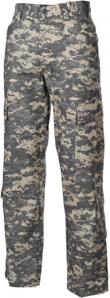 Polní kalhoty typu ACU (Army Combat Uniform) ze 100 % bavlny v povedení Rip-Stop.Tento typ uniformy je v současnosti využíván US Army.Vlastnosti:• 2 boční kapsy• 2 zadní kapsy s klopou• 4 kapsy na nohavicích s klopami na suchý zip• zesílený materiál v oblasti kolen a sedu