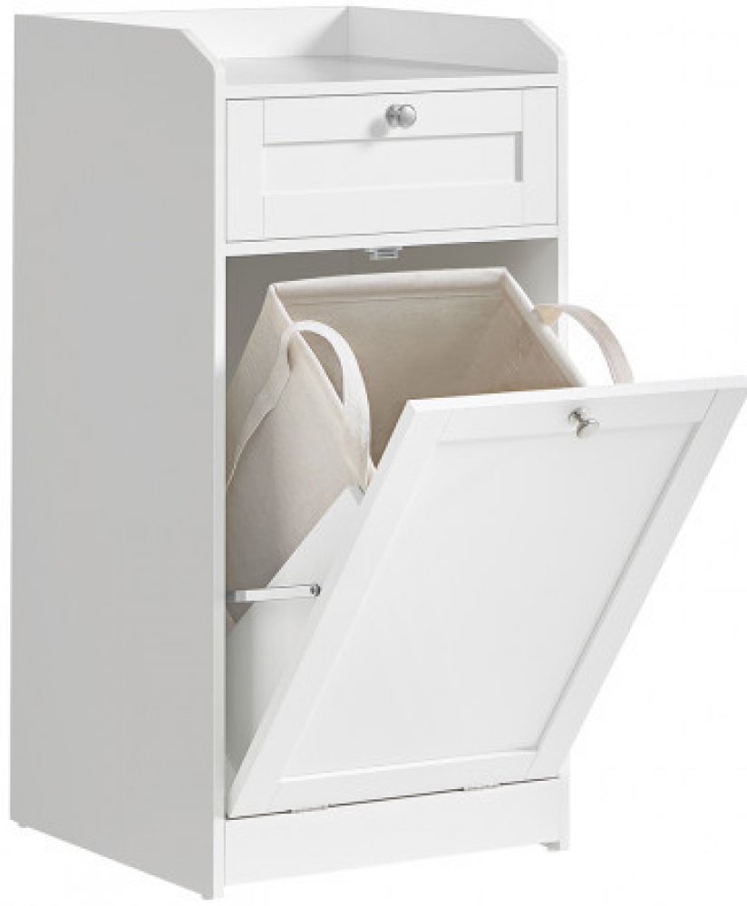 Koupelnová skříňka s košem na prádlo je velmi praktická a elegantní. Bílé barevné provedení vyzvedne styl každé koupelny. Díky této skříňce získáte kromě koše na prádlo také další úložný prostor pro vaši kosmetiku, čistící prostředky či jiné předměty. Parametry produktu: