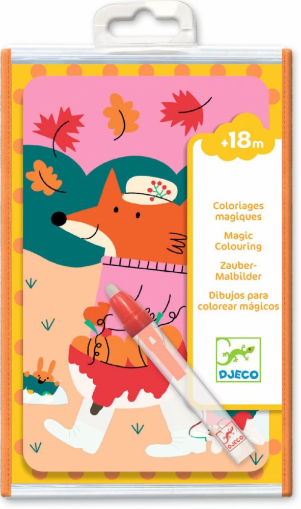 Balení obsahuje: 4 ilustrované desky z měkkého plastu (13 x 20 cm) s bílou vrstvou, která zmizí, 1 tužka se zásobníkem vody a 1 základ ze silného kartonu.