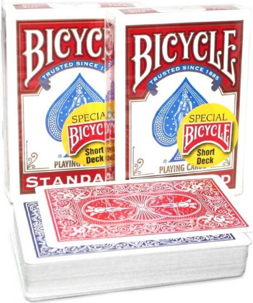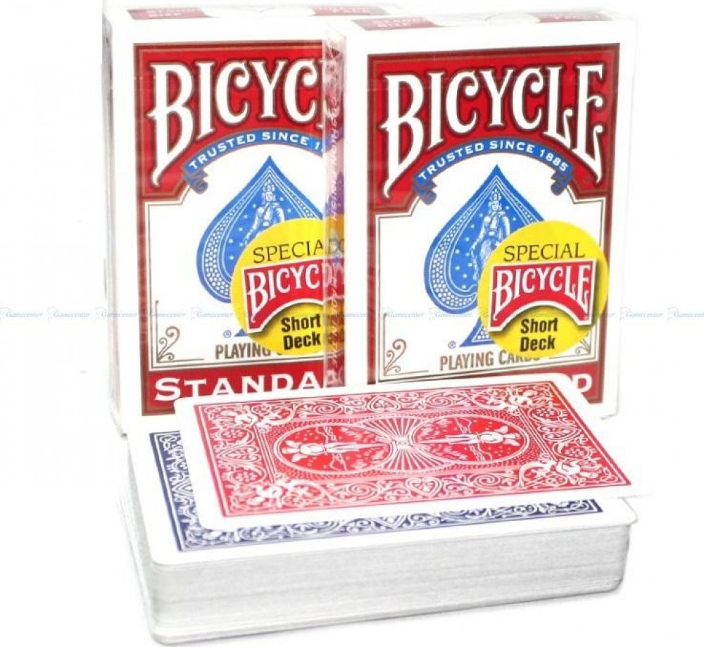 Kouzelnické karty Bicycle Short Decks červené Jsou jako standardní Bicycle karty 808ky základní, pouze jsou kratší asi cca. 1,6 mm-om. Karty jsou vhodné pre začínající ale i profesionální kouzelníky. Značka Bicycle byla založená Americkou společností The United States Printing Company.Karty Bicycl