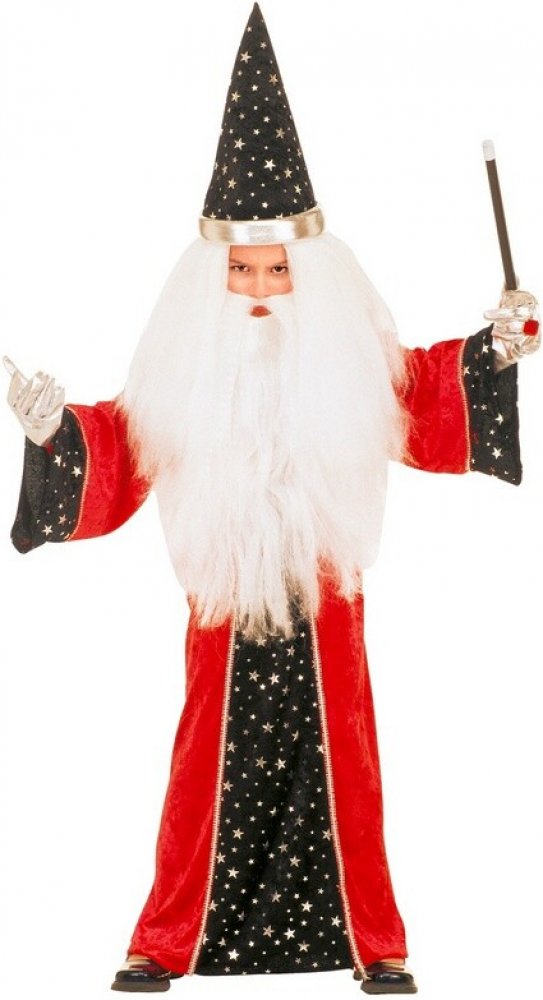 Dětský kostým kouzelníka obsahuje: plášť a čepici.