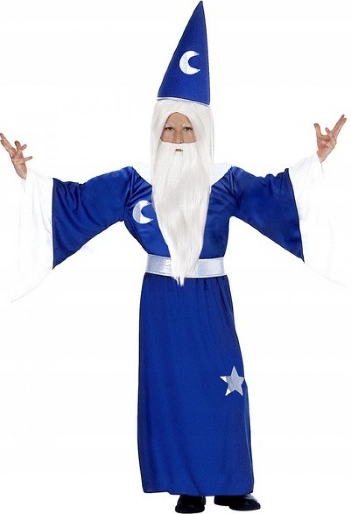 Modrý klobouk mága je vyroben z pěny obšité velurovou látkou s potiskem měsíce.