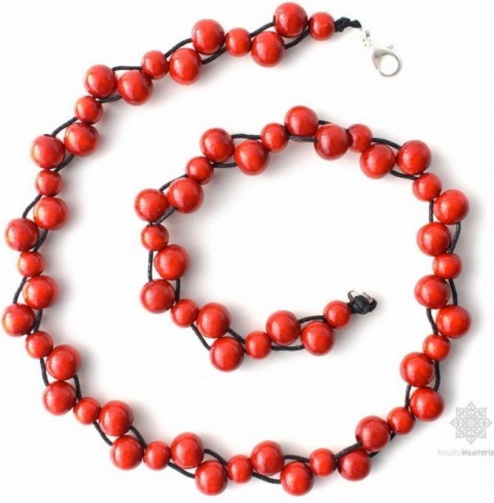 Kouzlo bižuterie dřevěné korále Perličky červená S3384