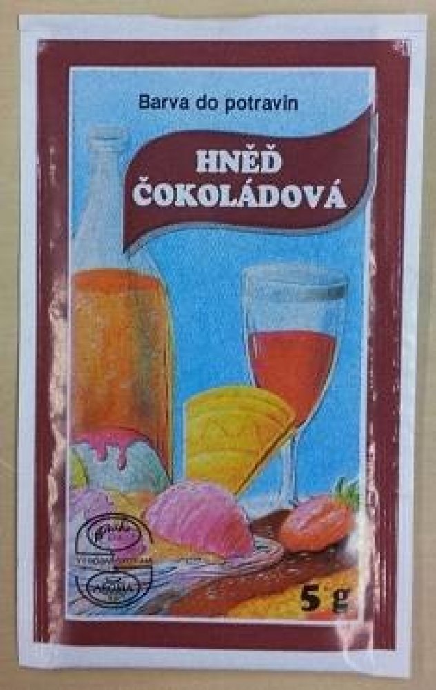 Složení: nosič (E514), barvivo (E110, E151, E102, E122))Obsah čistého barviva: 8,1 ± 0,5%Návod: Část obsahu sáčku rozpusťte v malém množství vody a toto množství přidávejte při přípravě do potraviny až do požadovaného odstínu.Dávkování: Obsah sáčku postačí nejméně na obarvení 6 kg hmoty.
