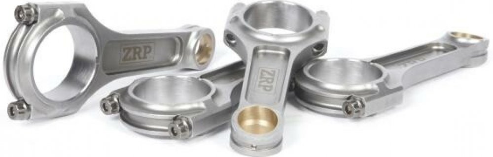 Kované ojnice od firmy ZRP se vyznačují perfektní kvalitou a přesností. Ojnice procházejí dodatečnými obráběcími procesy. Postranní žebrování minimalizuje kroucení ojnice a také redukuje její váhu. Pouzdra disponují radiální drážkou a jsou vyrobena ze slitin hliníku, bronzu a silikonu. Spojovací rukávy zaručují perfektní přesnost při montáži a opětovné použití. Drážkování v opěrných bodech poskytuje redukci váhy. Ojnice procházejí několika technickými kroky. Brokování zaručuje delší životnost. Magnaflux zaručuje kontrolu konzistence kovaného materiálu, který musí splňovat vysoký standard. Několika stupňový žárovací proces zaručuje vysokou pevnost, rozměrovou stálost a eliminuje únavu materiálu. Obrábění na CNC strojích zaručuje vynikající toleranci a přesnost 0.0003". Optimální vyvážení celé sady (+/- 1g). Přesnost osové vzdálenosti s tolerancí 001". Počítačová analýza Finite Element Analysis (FEA) odhaluje možné napětí. Šrouby ARP 2000 jsou rezistentní do upínací síly až 220.000psi, ARP L-19 pak až do síly 260.000/270.000psi. Kombinované testy prokázaly výdrž ojnic přes 700PS+ s použitím šroubů ARP 2000, se šrouby L-19 přes 800PS+ u 4-válcového motoru a 1000PS+ u 6-válcového motoru. Ojnice jsou dodávány s lubrikantem ARP moly a montážními instrukcemi.