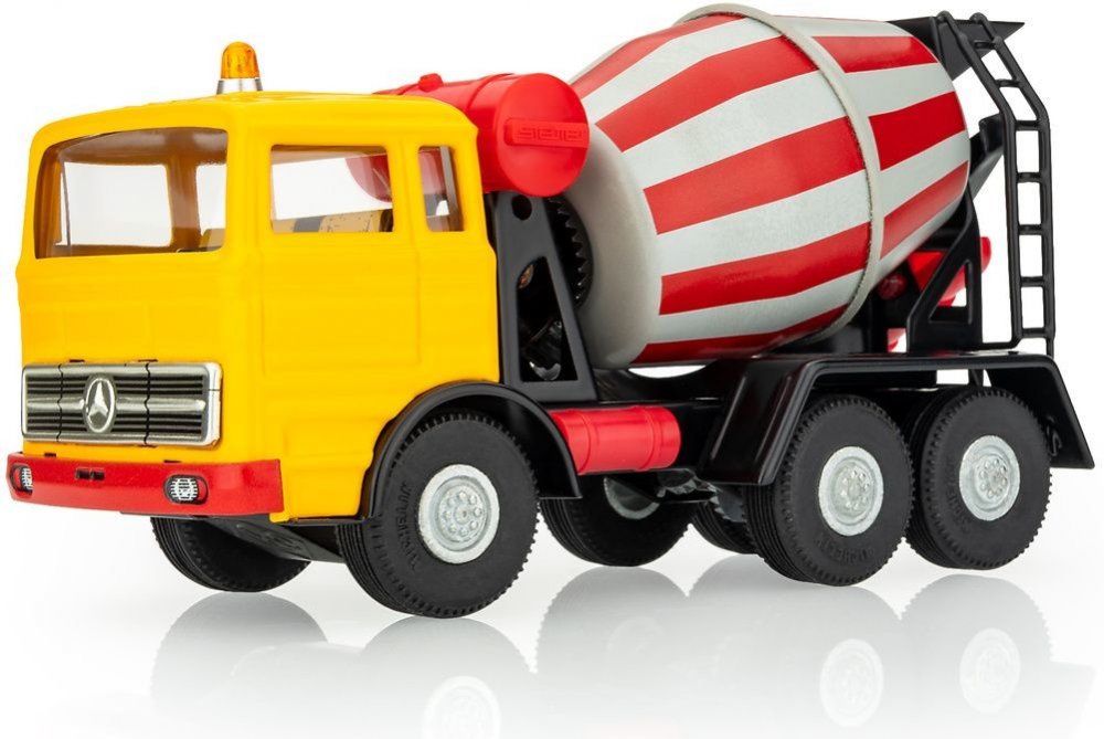 Kvalitně zpracovaný kovový model pracovního vozu Mercedes domíchávač. Na vozu je umístěno míchadlo, které se za jízdy točí. Plechové hračky od české značky Kovap jsou vyrobeny velmi pečlivě a detailně. Poslouží jako hračka do dětského pokoje nebo jako model do sbírky.