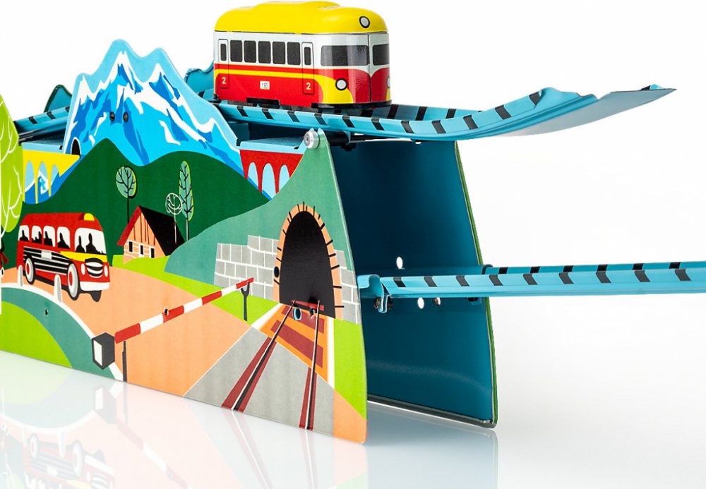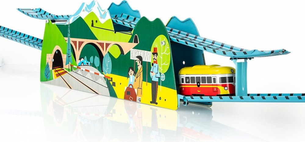 Vlastní vozidlo horské dráhy je vybavené mechanickým pérovým strojkem natahovaným klíčkem. Pohon umožňuje vozidlu pohyb na dráze. Speciální úpravou dráhy (zubatkou) je docíleno pohybu vozidla z jedné strany na druhou. Vozidlo horské dráhy vystoupá z levé strany na nejvyšší část dráhy, odtud s automaticky vypnutým pohonem sjede samot...