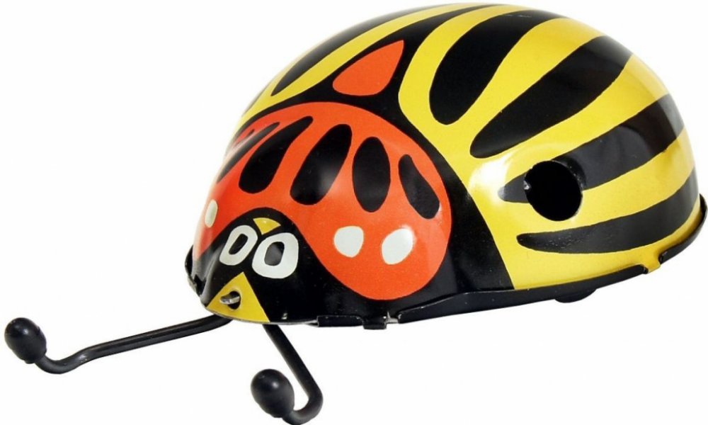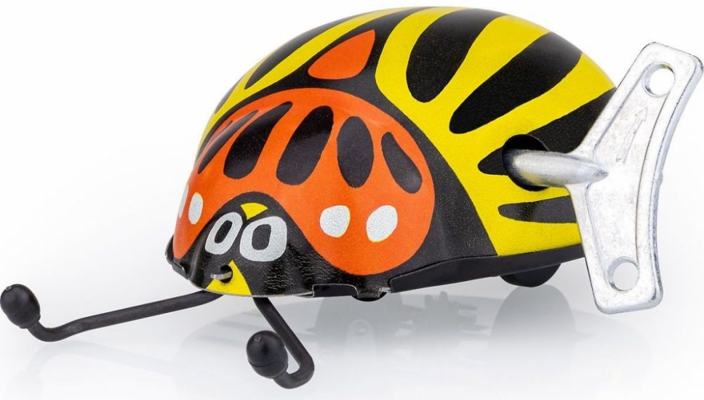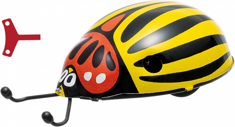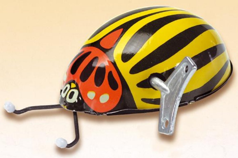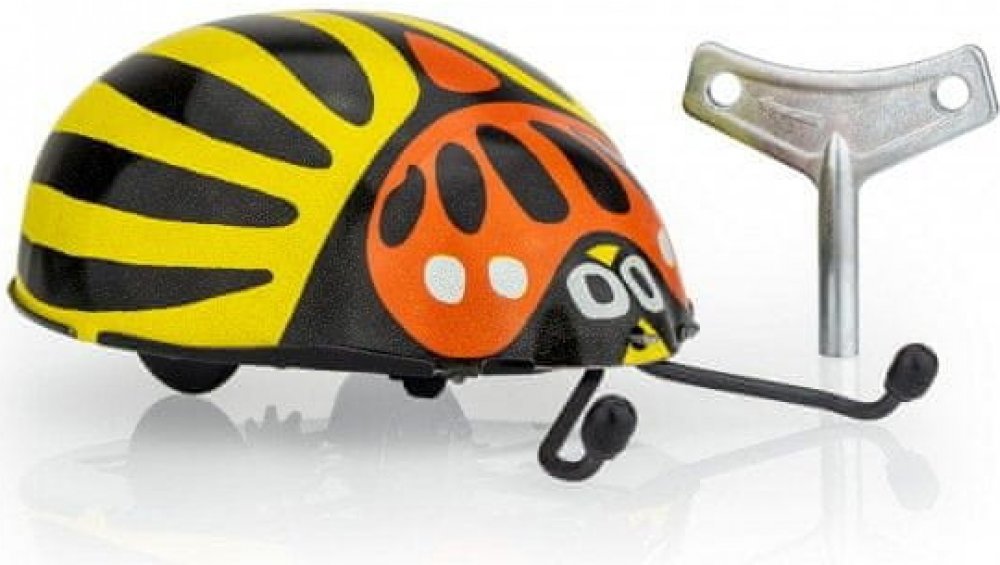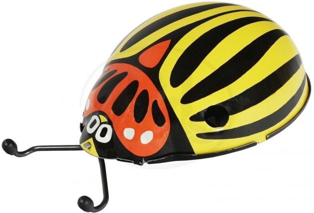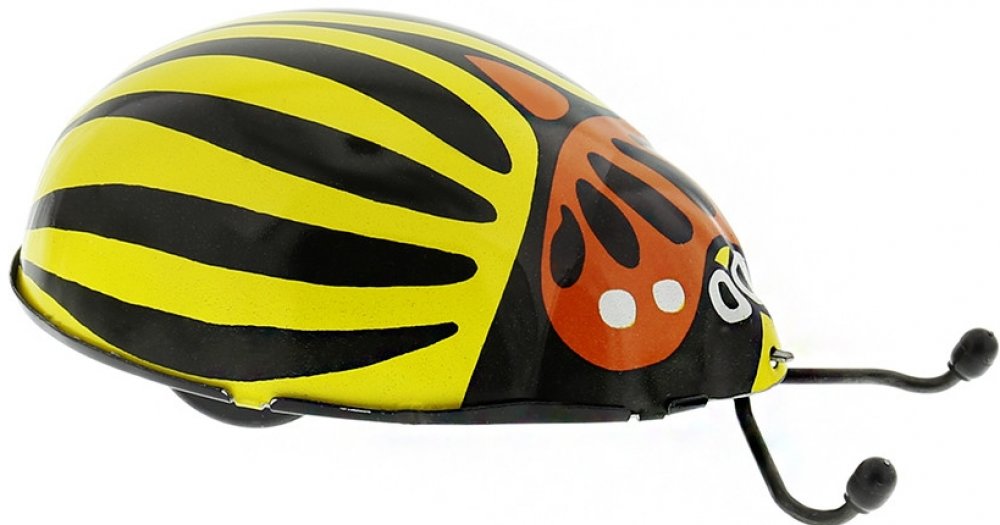 Mandelinka bramborová patří mezi mandelinkovité brouky. Byla k nám zavlečena v době druhé světové války z Ameriky a nyní páchá na bramborových polích asi největší škody. Tento model ovšem škody nedělá, jen si krásně po natažení klíčkem jezdí. A představte si, že ani ze stolu nespadne! Umí se na něm