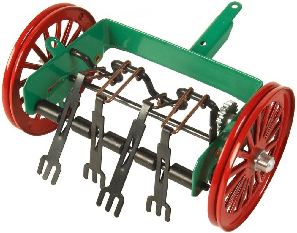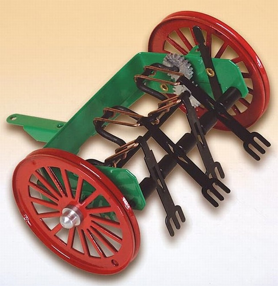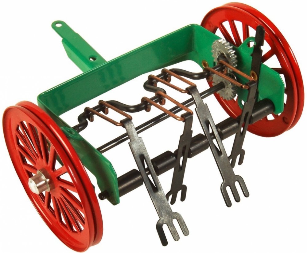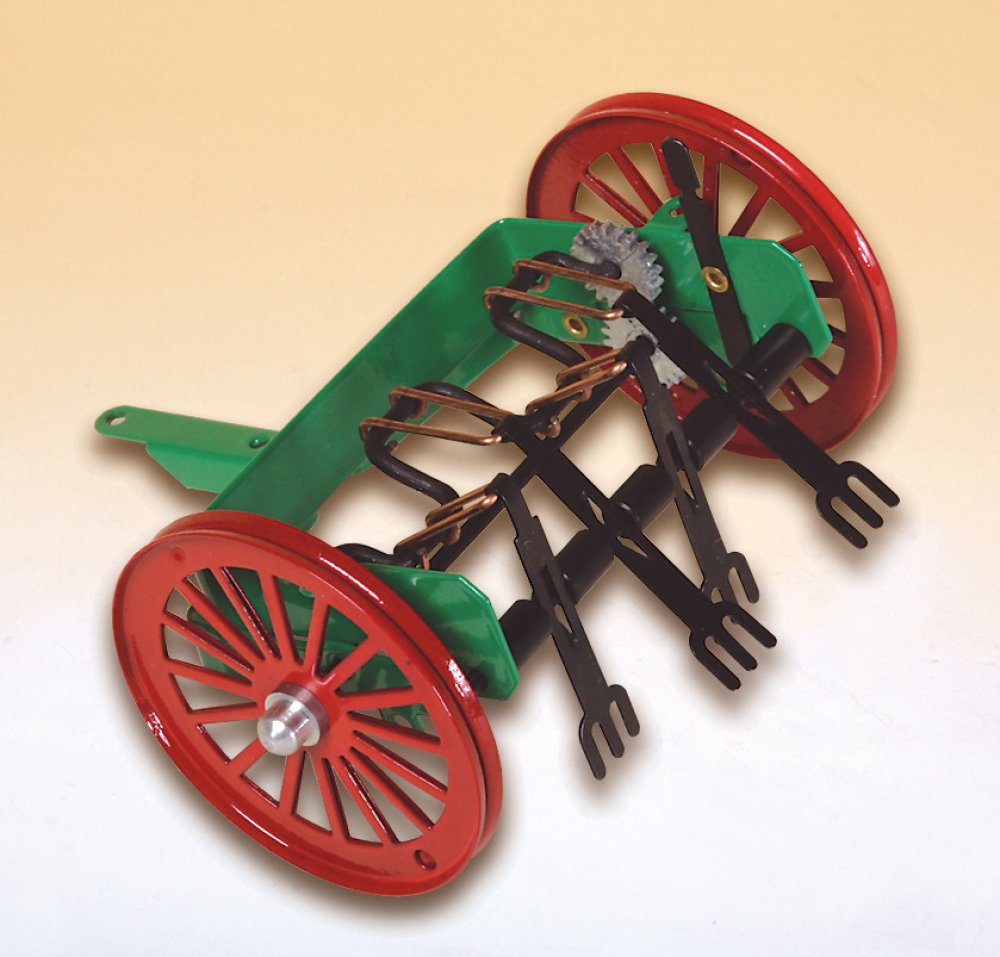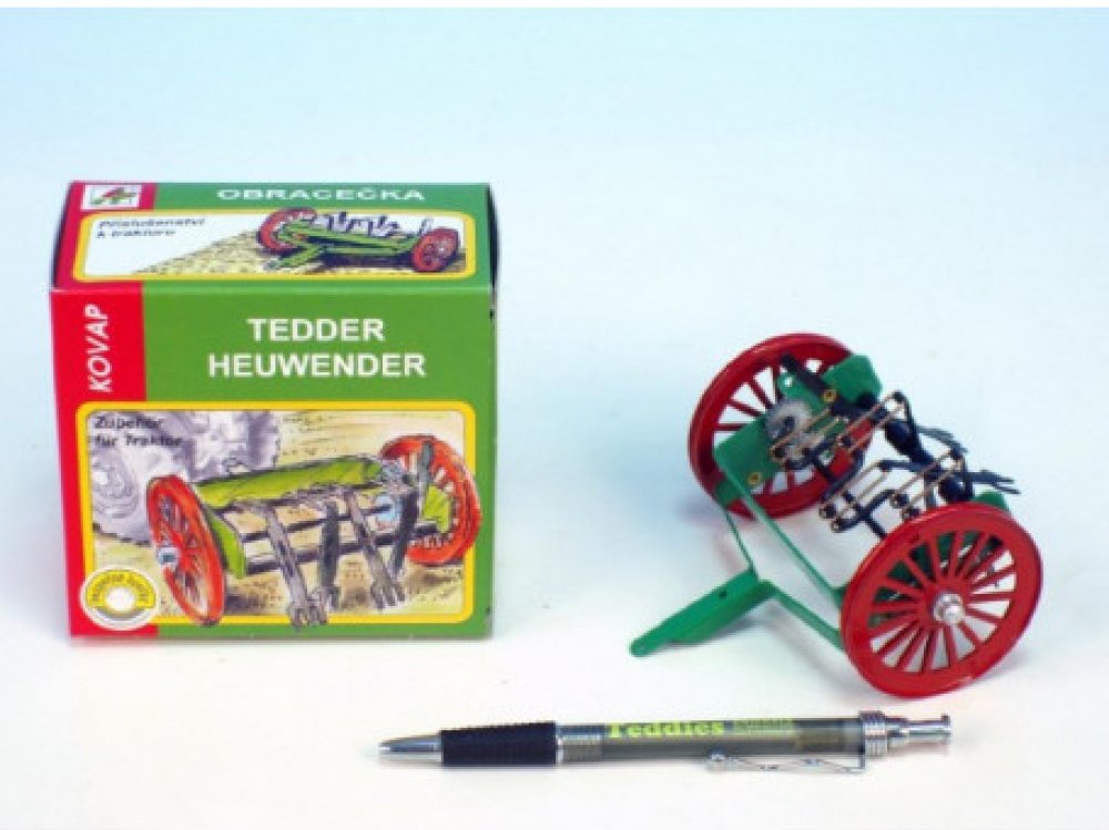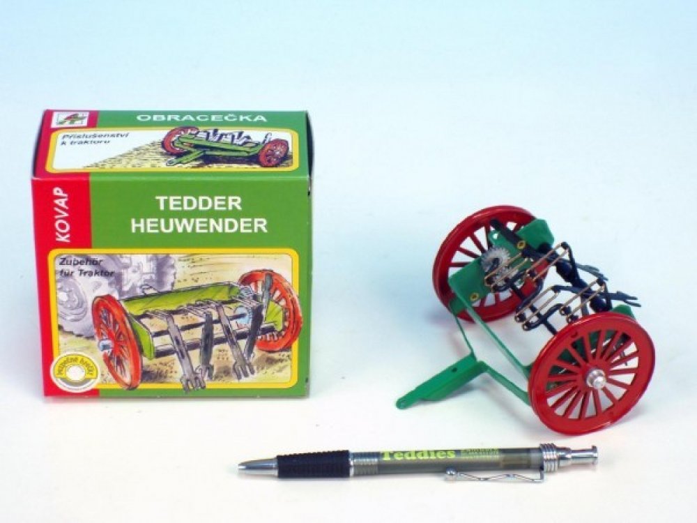 Kovová obracečka jako příslušenství k traktorům Kovap. Věrný model zemědělského stroje měří cca 10 cm a vyvedený je v měřítku 1:25. Obracečku lze připojit ke všem traktorům značky Kovap. Její součástí je mechanismus k zapínání a vypínání její činnosti. Hračka nesmí chybět na statku žádného malého farmáře a zemědělce. Vhodná je pro děti od 3 let.