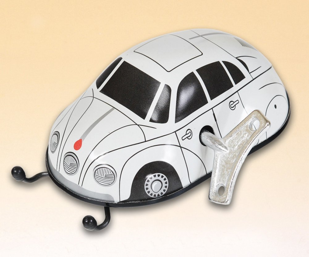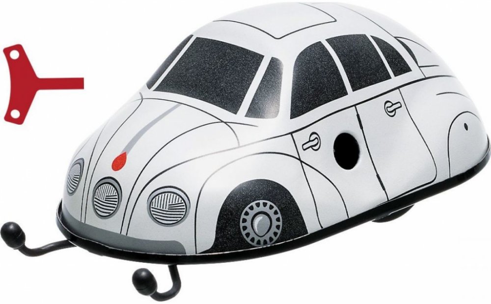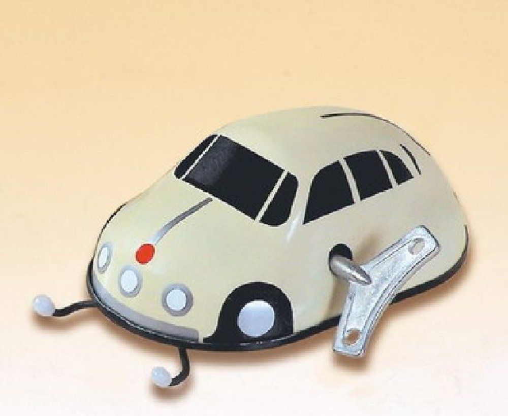 Pohyb této hračky umožňuje pérový strojek natahovaný klíčkem