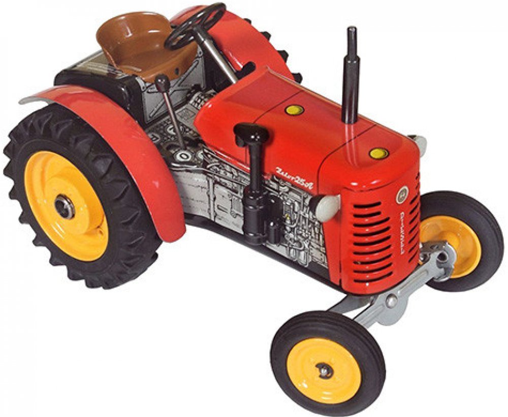 Efektivní, silné, odolné - přesně takové jsou modely brněnského výrobce! A i ty naše, KOVAPácké. Potěšte Zetoráka plně funkčním českým plechovým traktorem, kde pohyb zajišťuje unikátní pérový strojek natahovaný klíčkem. A při hraní si můžete pobrukovat písničku: Jede traktor, je to ZETOR! Přetěte si článek o historii firmy Zetor v našem magazínu. Pohyb traktůrku zajišťuje unikátní pérový strojek n...