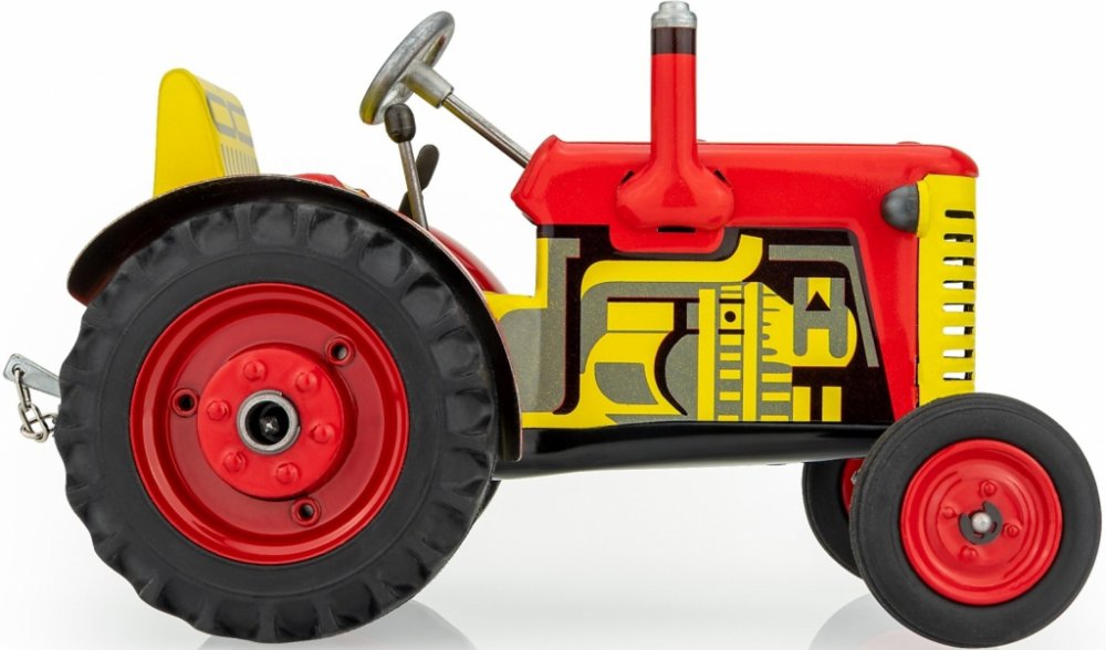 Pohon zajišťuje mechanický pérový strojek natahovaný klíčkem. Traktor má čtyřrychlostní převodovku. Disponuje třemi rozdílnými rychlostmi vpřed, zpátečkou a neutrálem. Je rovněž vybaven ruční brzdou. Přední náprava je řiditelná volantem.