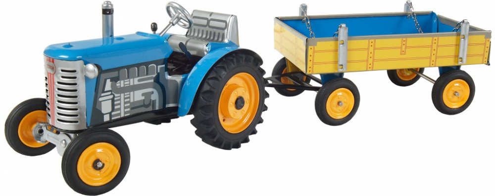 Funkční model traktoru značky Zetor na pérový strojek natahovaný klíčkem. Traktor lze řídit volantem, je vybaven převodovkou se třemi rychlostmi vpřed a zpátečkou a zabrzdit ho můžete ruční brzdou. Valník dodávaný k traktoru má sklápěcí zadní čelo. K modelu se dají přikoupit také další zapřažitelné zařízení jako různé druhy valníků, válec, secí stroj, obracečka a dokonce fekál.