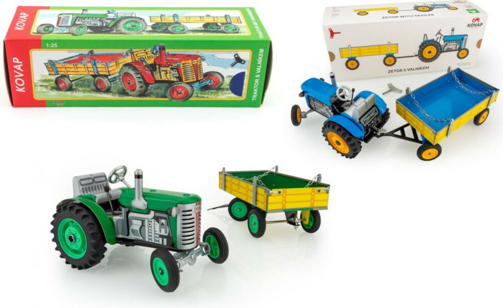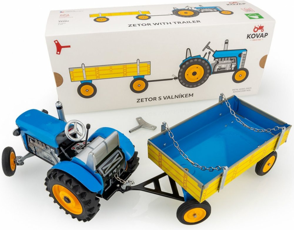 Kovap Traktor Zetor s valníkem modrý na klíček